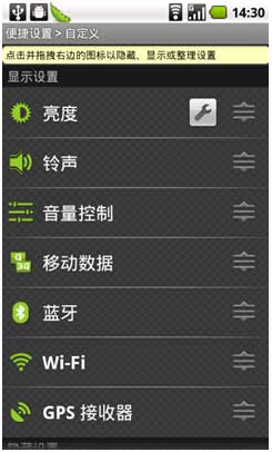 软件介绍: 可以对我们平时常用的设置进行系统化的统一管理,避免了我们反复的操作。包括对亮度、铃声、音量控制、蓝牙、wifi、GPS、网络数据、主音量、屏幕待机、飞行模式、同步、旋转、解锁图案的设置。