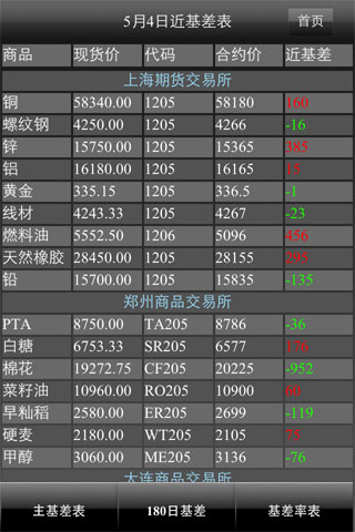 1、基差表:主力基差表、最近基差表可直观的查看24个期货品种的每日现货价格、每日期货价格、及(现期差价)基差情况。