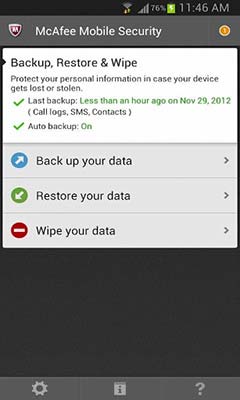 McAfee Mobile Security 为您 Android 设备提供全面的安全保护。使用 McAfee 屡获殊荣的防病毒、隐私和安全保护软件保护您的 Android 手机或平板电脑。 此免费试用版可为您和您的设备提供 14 天的保护。试用后,您可以在该应用程序中购买 McAfee Mobile Security。 功能: Android 防病毒 - 迈克菲主动保护技术会扫描文件、SD 卡、应用程序以及 Internet 下载中是否含有的恶意代码 安全手机上网 - 通过阻止访问短信、电子邮件、QR 代码及社交网络中的有风险站点来防御网络威胁 设备锁 - 通过远程锁定所有数据(包括 SD 卡上的数据)防止手机和个人信息被误用