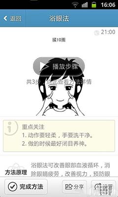 眼睛疲劳、视力下降、眼睛发干、常流眼泪……眼睛已经为我们服务这么久,也轮到我们照顾照顾她了吧?人体的各个器官也像机器一样需要保养,需要我们的呵护。 我们的目标是一款能有效保护眼睛的应用: 1、个性定制:人生而不同,我们帮你找到最适合你的方法 2、简单实用:简单。简单。简单。大家都不喜欢复杂,我们也一样。 3、定时提醒:需要用脑的事太多了,不必费劲记忆,我们会按时提醒,让你保持最佳状态。 4、眼睛健康锦囊:一些简单有效的小方法,帮助你改善工作、生活中经常遇到的眼睛的问题。 【更新内容】 1.自动更新功能,可快速获得新版本。 2.解决升级bug:升级后闪退无法进入,彻底修复。