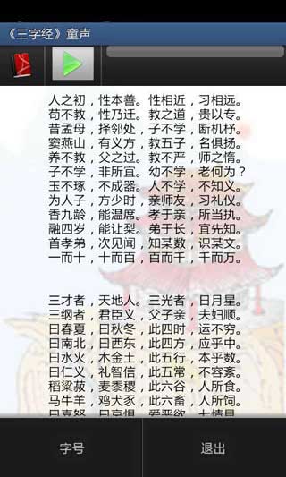 本软件使用天籁般的童声诵读,朗朗上口,并配有每一句古文的详细解释,是家长教育启蒙小朋友的绝佳教材!