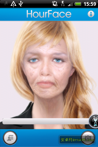 介绍: HourFace:三维老化照片 非常有趣,可以使照片老化!可以设置自己的图片和相机照相,可玩性高!