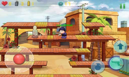 游戏介绍: 不一样的穿越火线,不一样的反恐精英。这一个创新玩法的枪战游戏,游戏中不但有30多种世界名枪荟萃,沙漠之鹰,AK47,火箭筒,AWP狙击等,还有10种造型可爱的反恐精英角色,逼真的枪械音效,华丽的游戏场景,必定让你热血沸腾。游戏有蓝牙对战和在线对战多种模式,让你体验与人斗其乐无穷,来,联机挑一把?