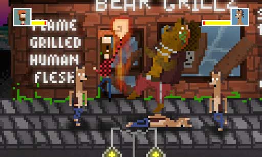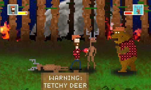 《像素铁拳(Fist of Awesome)》是一款像素复古风格的横版卷轴动作游戏。主人公Tim Burr是一位伐木工,当他发现自己的房屋被烧毁,家人失踪后踏上了复仇之路。然而这一切似乎没那么简单,背后隐藏的是外星人妄想掌控地球的大阴谋。当然这是剧透,游戏的前期只会看到各种凶猛的野生动物,如愤怒的小鹿和笨拙的狗熊等。Tim Burr将去世界各地冒险,甚至进入时间旅行。
