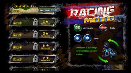 游戏介绍: 《赛车摩托(Racing Moto)》是一款以越野摩托赛为主题的游戏。游戏令人热血沸腾,快驾驶你的摩托车勇敢的向前冲去吧。该游戏射击了各种极高难度的摩托车空翻特技,不过游戏的操控难度不是很大,主要通过屏幕上的虚拟按键来控制摩托车。只要我们做出的动作越多、越难,我们所获得的分数就会越高。想要挑战高分吗?想要和小伙伴一起比试高低么?那就赶快来下载吧!