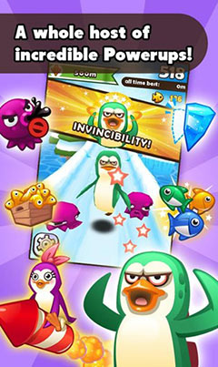 《超级企鹅Super Penguins》是一款奔跑类游戏,玩家利用重力感应来操控企鹅的方向,路途中有很多鱼,还有很多障碍,另外还有需要你解救的小企鹅,当然也有些坏蛋。