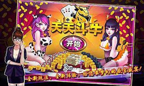 游戏介绍: 天天斗牛是一款地方性、游戏速度极快、刺激的棋牌游戏,主要流行在湖南、广东、广西地区。游戏可以由2人到5人同时进行,总共52张牌(除大小王),在确定庄家后,系统将给予玩家每人5张牌,用户将根据5张牌进行排列组合,并且闲家一一和庄家进行大小比较确定胜负。